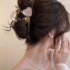 Oversized heart-shaped claw clip that combines function with romantic aesthetics.