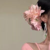 Dreamy peach-pink floral claw clip with soft gradient tones, perfect for creating romantic forest fairy hairstyles. The oversized design provides secure hold while maintaining an ethereal aesthetic.