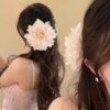 Versatile pink floral side clip that effortlessly transitions from securing bangs to decorating loose vacation waves.