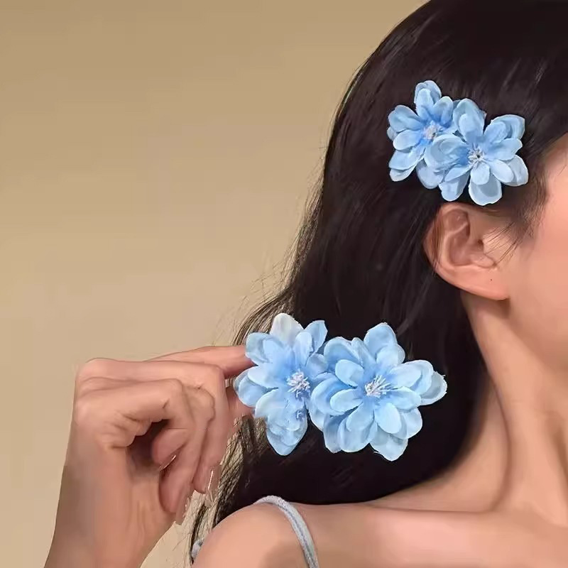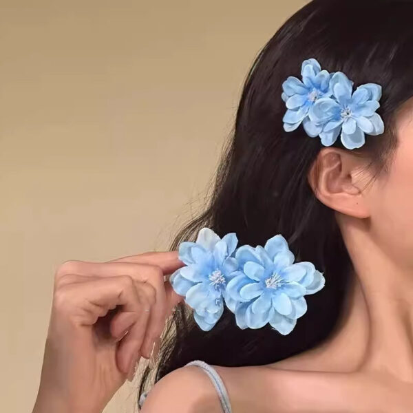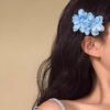 Canelé-Inspired Blue Floral Hair Clip – Spring Outing Side Accessory