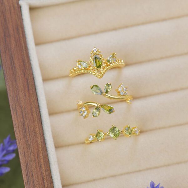 | Color | Leaf Bud Olive Green Open Ring, Teardrop Olive Green Zircon Open Ring, Three-Zircon Olive Green Open Ring |