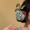 Green Butterfly Flower Hair Clip with Rhinestones, Green Butterfly Hydrangea Hair Clip