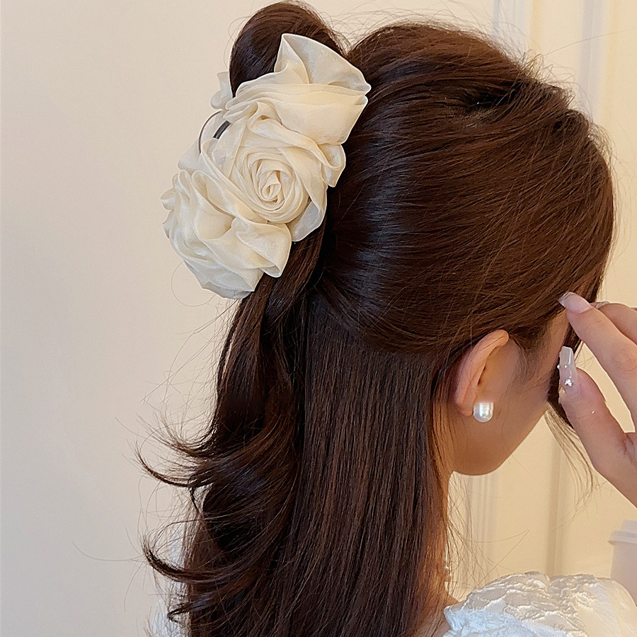 Korean Chiffon Flower Hair Claw – Elegant Updo Essential