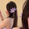 Purple Clematis Hair Clip – Pearl Tassel Detail