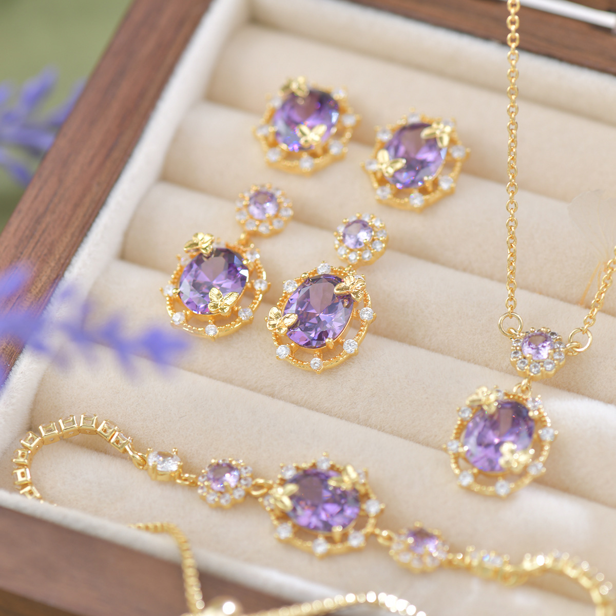 Purple Zirconia Butterfly Jewelry Set – French Elegance Collection
