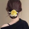 Buttery yellow satin floral scrunchie that upgrades messy buns with subtle floral fragrance.