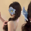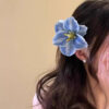 Delicate blue floral duckbill clip to stylishly secure flyaways while maintaining an ethereal aesthetic.
