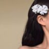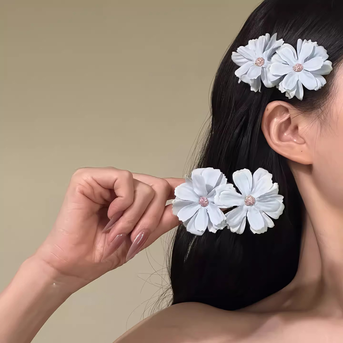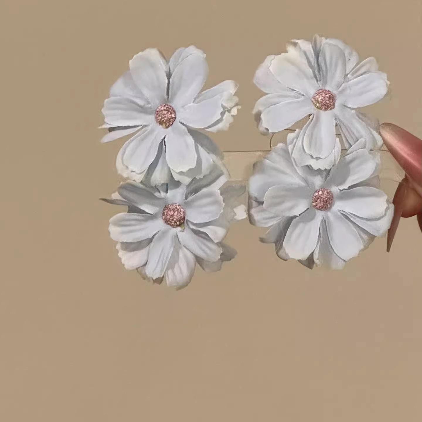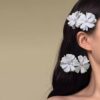 Icy blue floral cluster clip with subtle silver shimmer, evoking moonlight on forest flowers for unique ethereal styles.