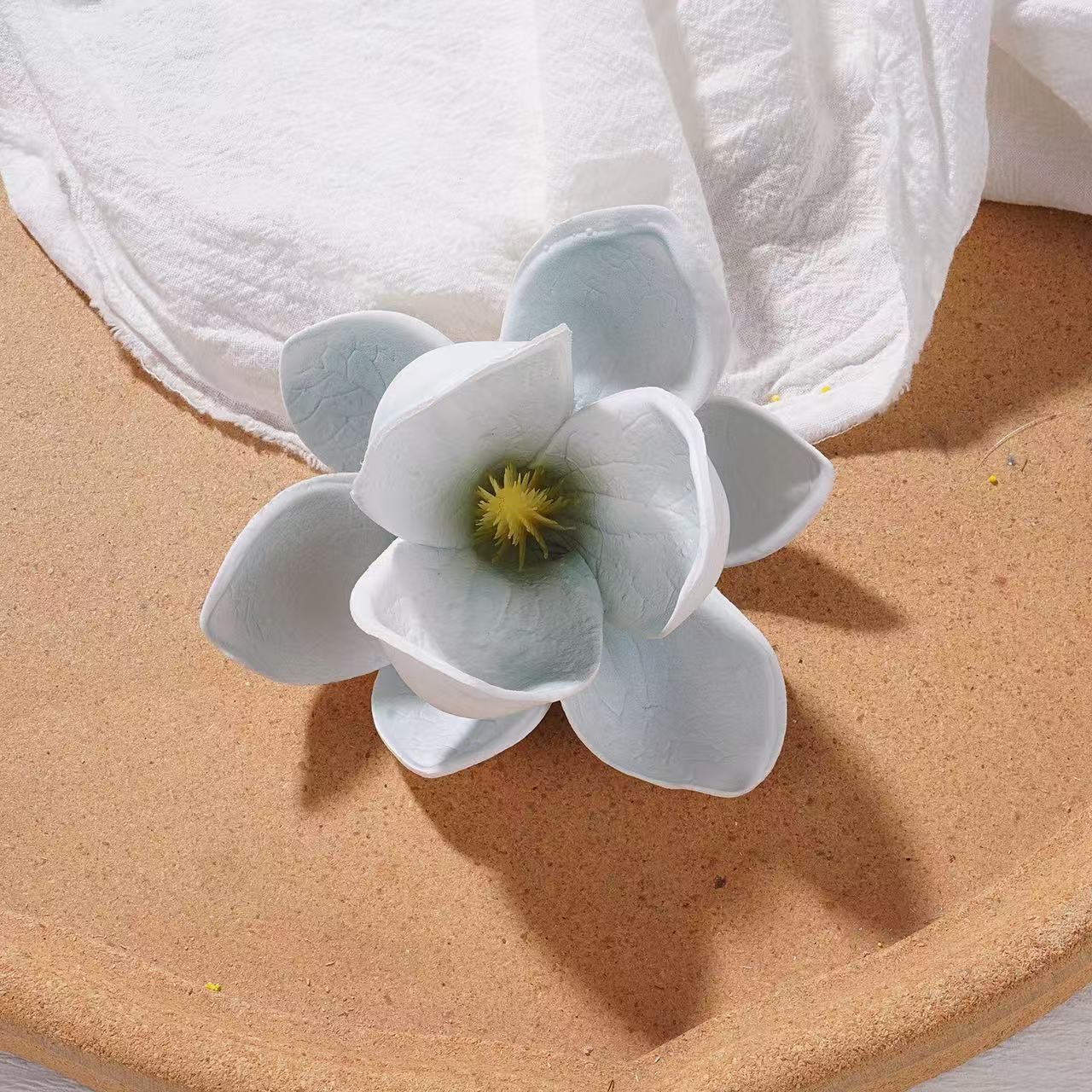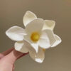 Realistic magnolia side pin with a summer-ready vibe, perfect for beach weddings or tropical-themed hairstyles.