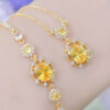 Cheerful yellow zirconia butterfly jewelry set with matching necklace, bracelet and earrings in patented design.
