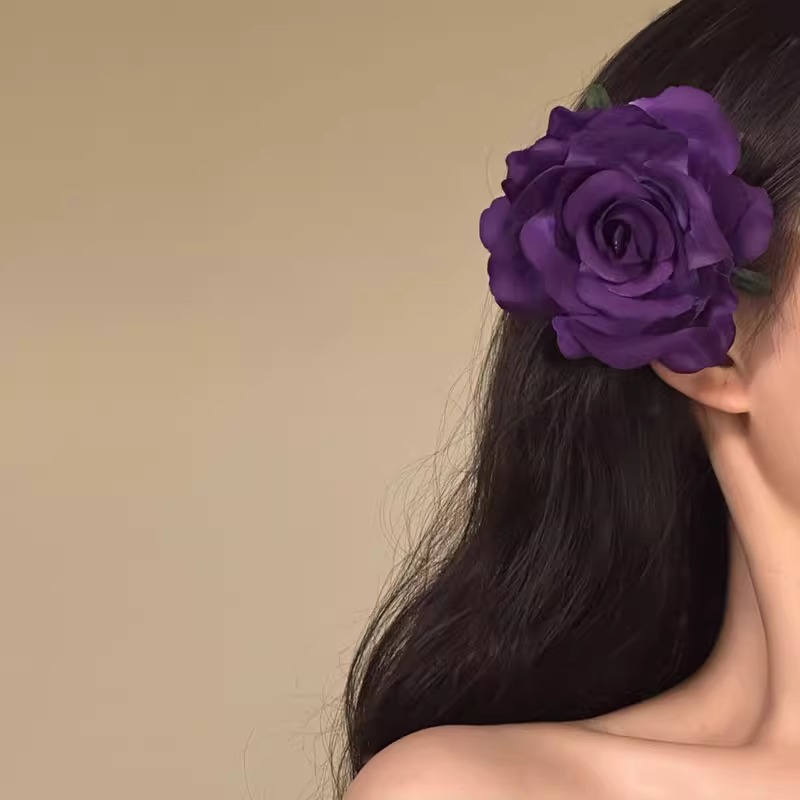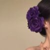Royal purple floral duckbill clip with gold-tone accents, offering sophisticated styling for formal occasions.