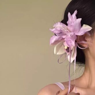 2025 Spring/Summer Ribbon Floral Hair Clip – Pink Fairy-like Side Accessory
